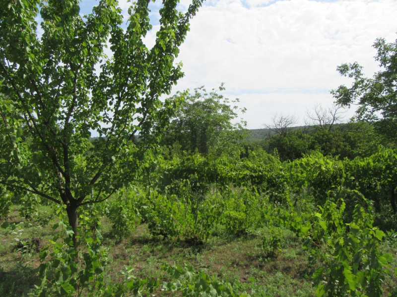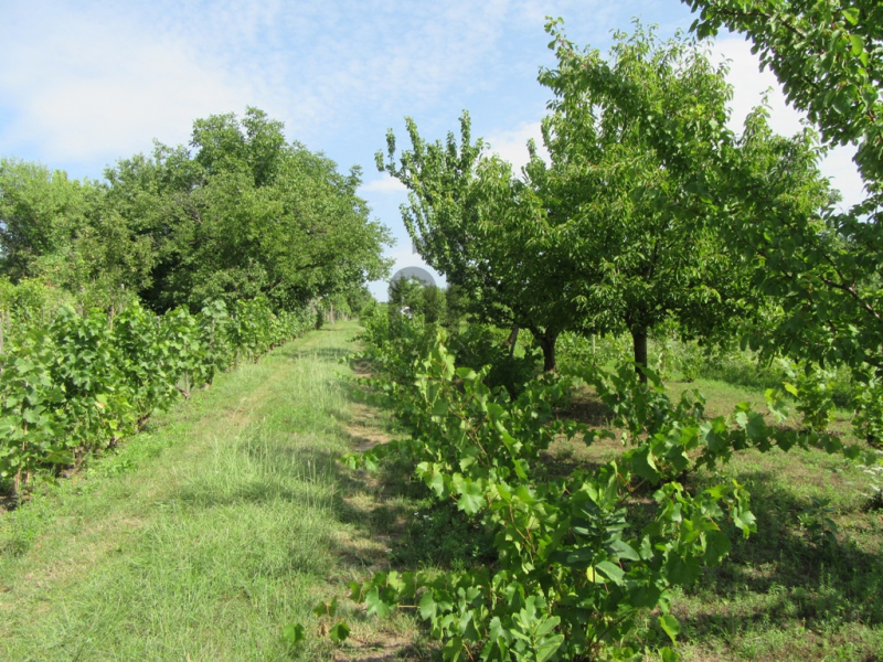 A telek szépen karban tartott, gyümölcsfákkal, de főként szőlő...