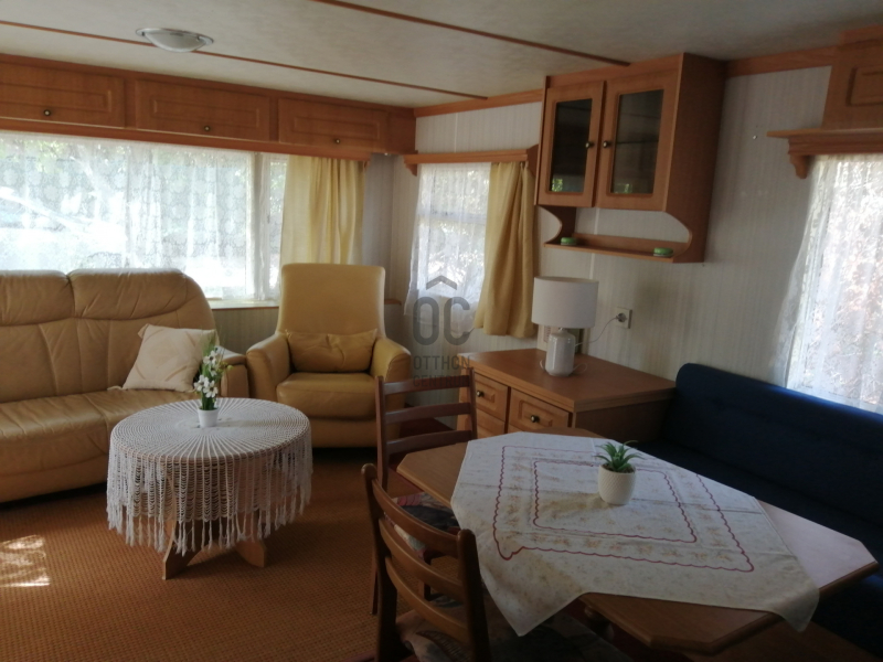 Balatonalmádi - Káptalanfüreden üdülőövezetben eladó telek, mobilházzal.A tulajdoni lap szerint külterületi, gyümölcsös, út besorolású terület a gyermektáborok közelében, nyaralókkal beépített utcában található.
