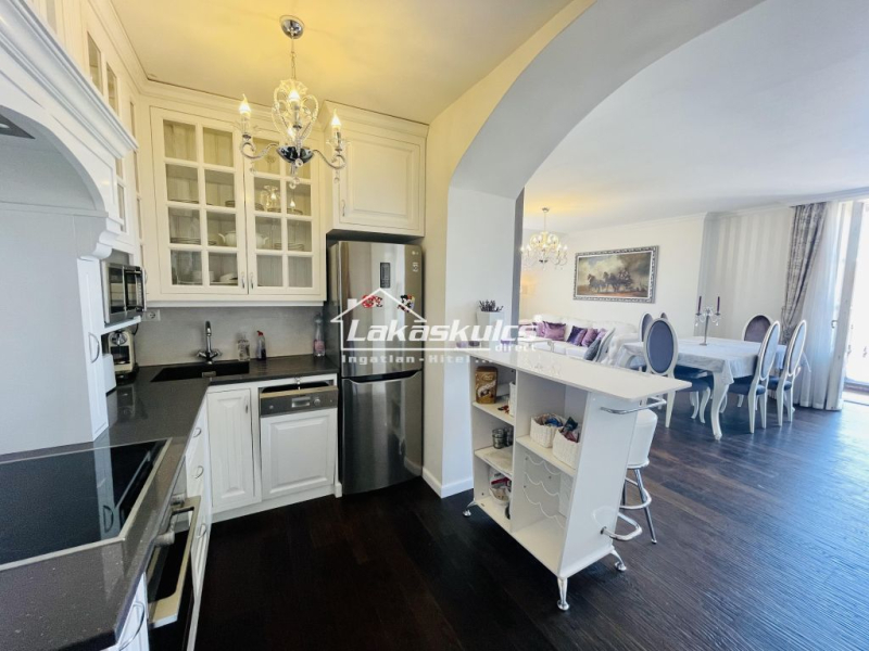 BALATONFÜRED REFORMKORI VÁROSRÉSZÉBEN, A 71-ES ÚT ALATT, A HONVÉD UTCA ÉS A HURAY UTCA TALÁLKOZÁSÁNÁL, A PATINÁS ESZTERHÁZY VILLÁBAN KÍNÁLUNK 1. EMELETI, DÉLNYUGATI TÁJOLÁSÚ, BALATONI PANORÁMÁS, LUXUS KIVITELŰ CSODÁLATOS LAKÁST ZÁRT PARKOLÓHELLYEL (igény esetén 2db).Alapterülete bruttó 128m2, mely két szinten helyezkedik el és egy lakáson belüli l...