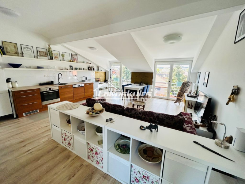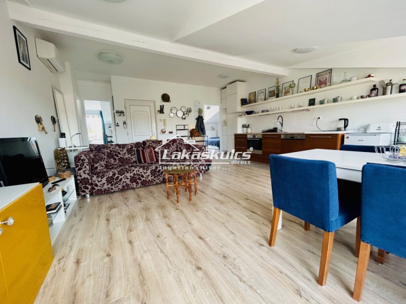 Az ingatlanból kőhajításra sincs a part, a kikötők, az éttermek, kávézók. A lakás bruttó 72m2, nettó  62 m2 alapterületű, s tartozik hozzá 2db terasz, ahonnan kis Balatoni panorám