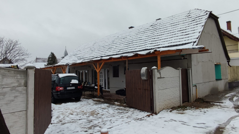 Vert vályog falazatú, fafödémes cserép héjazattal.