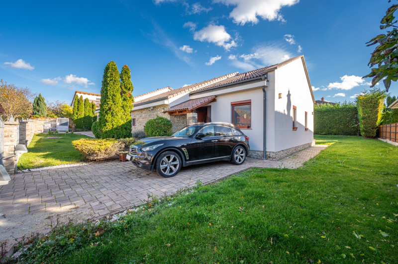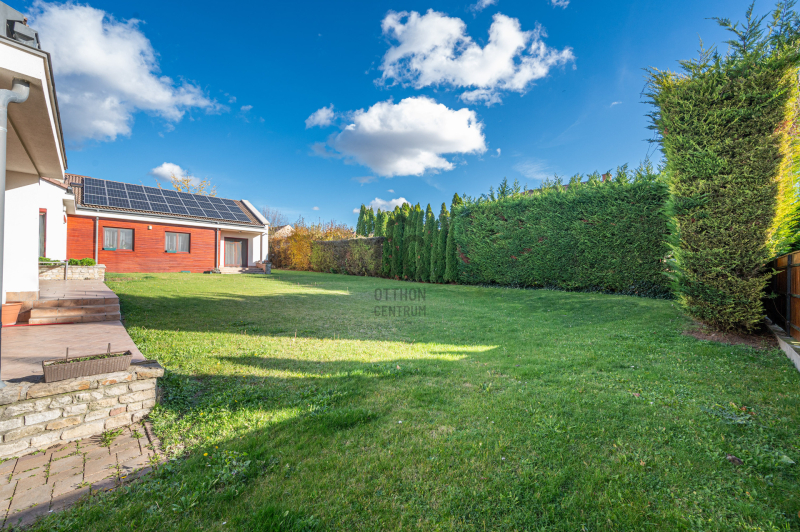 Biatorbágyon, a Zöldsziget lakópark legelőnyösebb részén eladó egy egyszintes, luxus családi ház, 1443 nm-es telken.