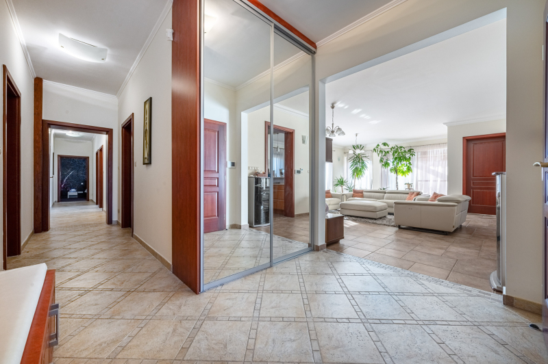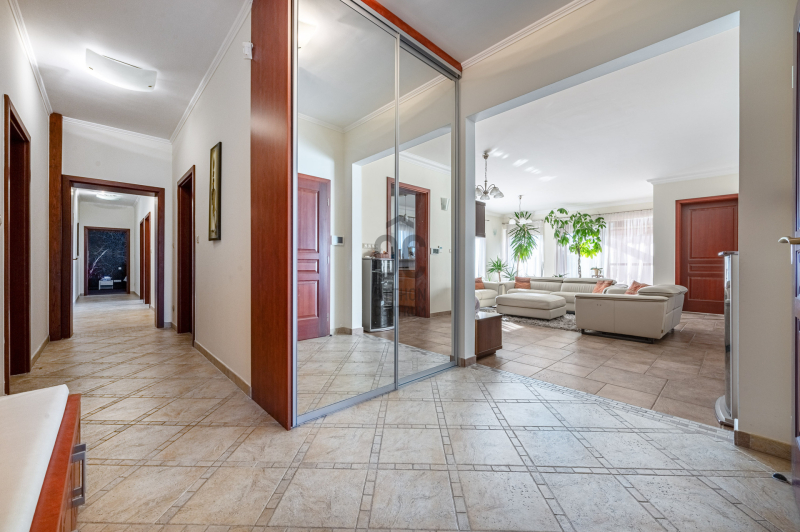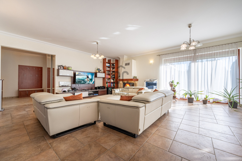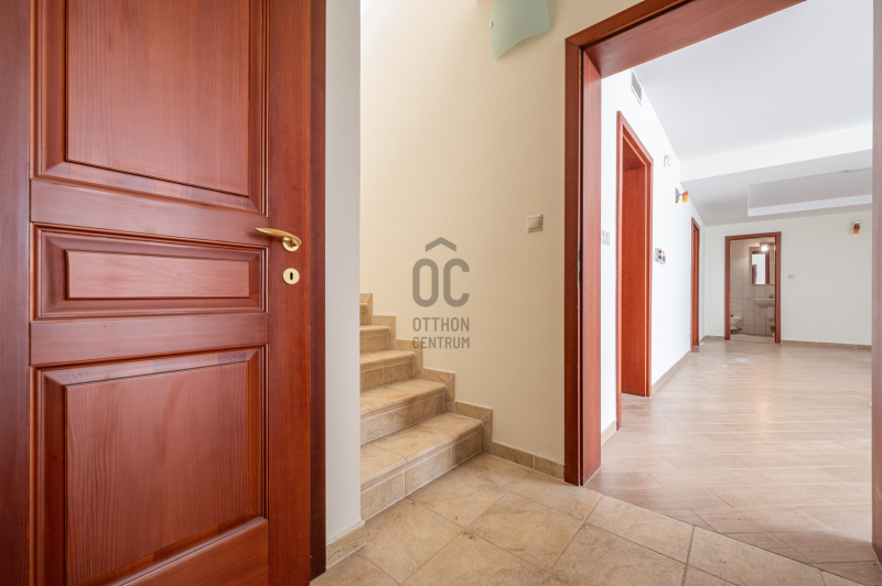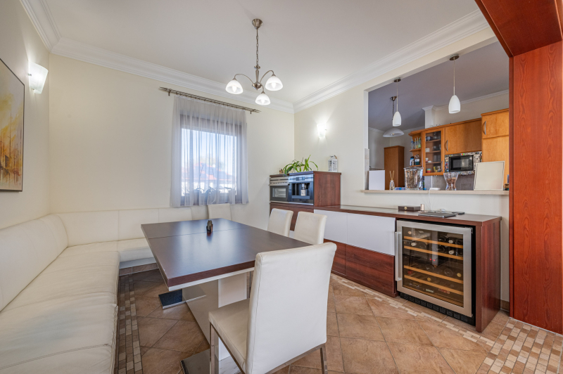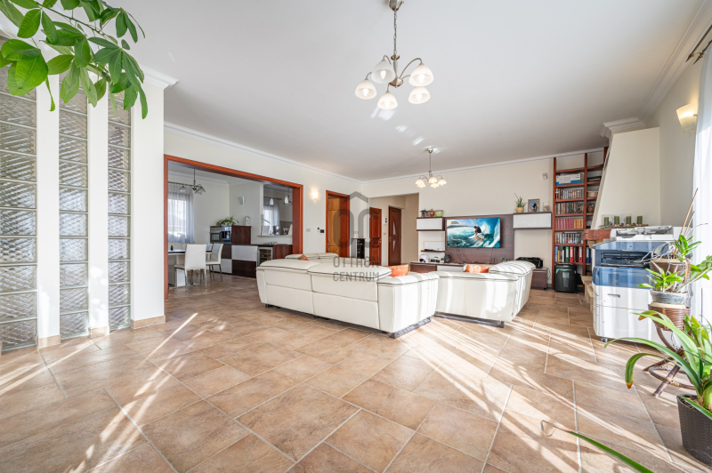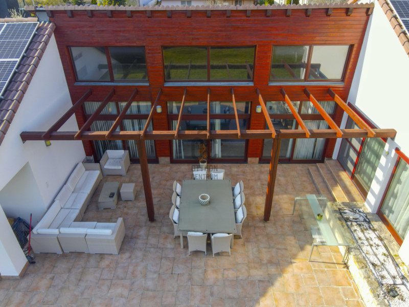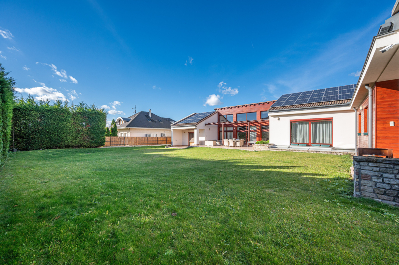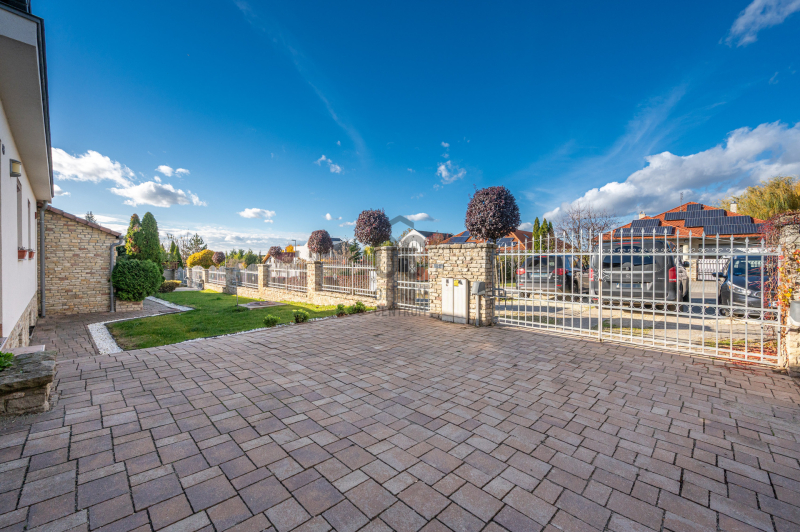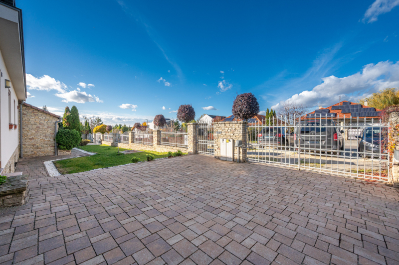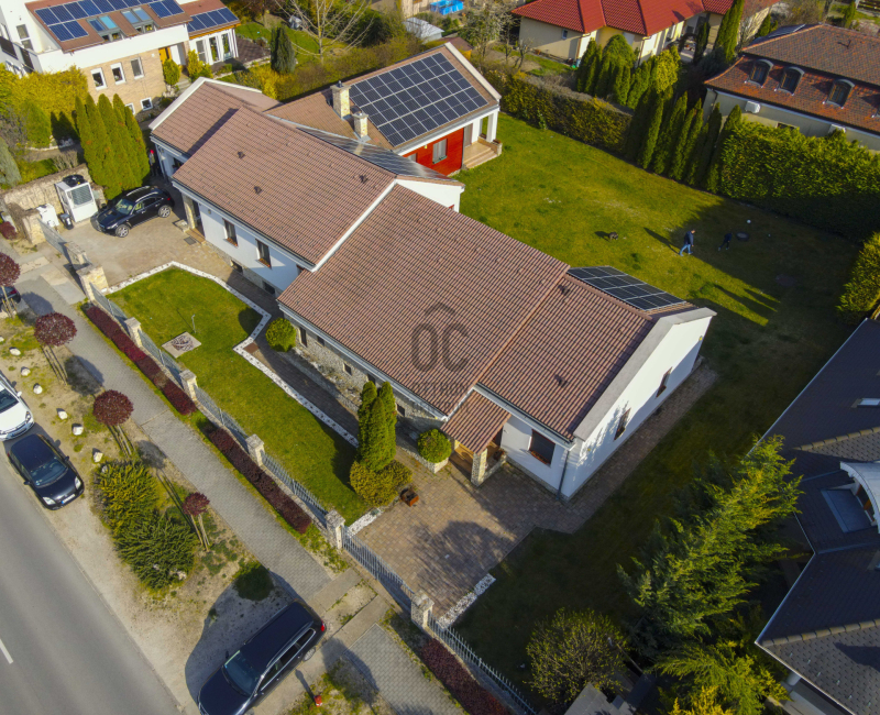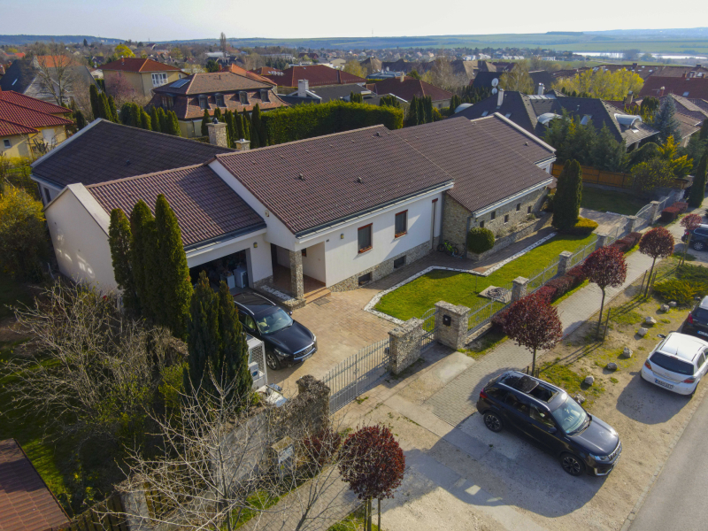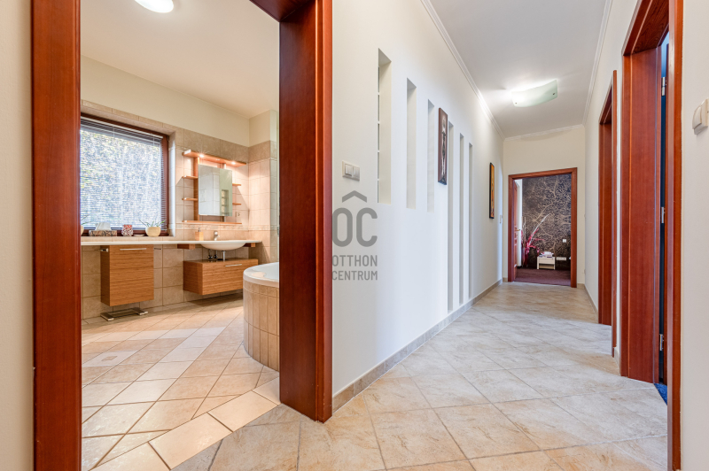 A családiház 564 nm alapterületű, 9 szobával rendelkezik, 3 fürdővel ideális megoldás két generáció együttélésére is, mivel két külön lakrész került kialakításra, ami akár össze is nyitható.