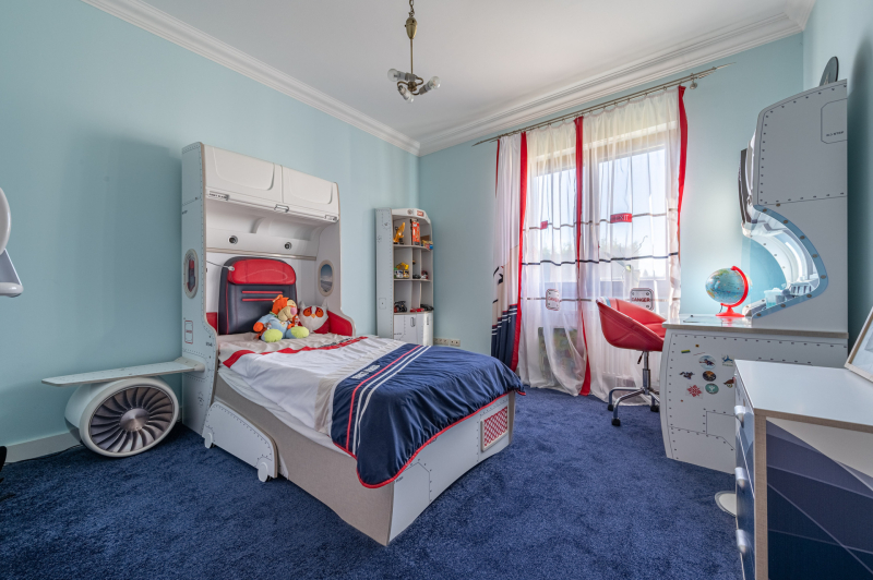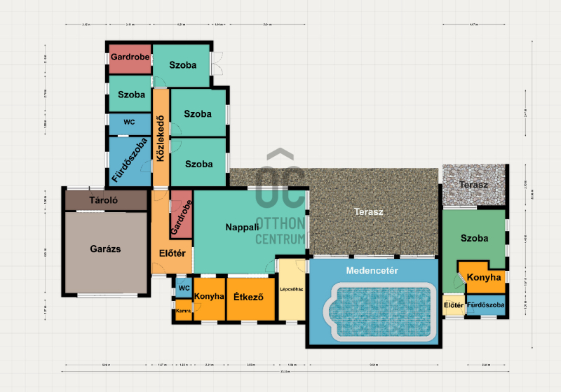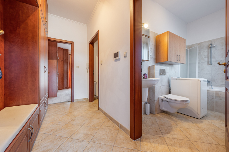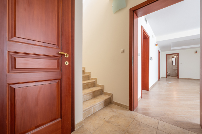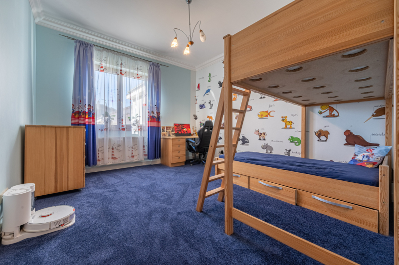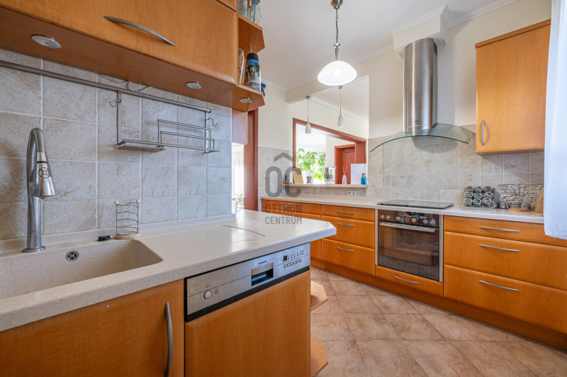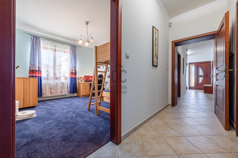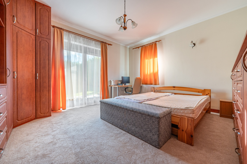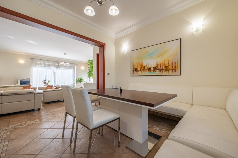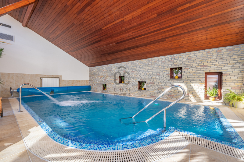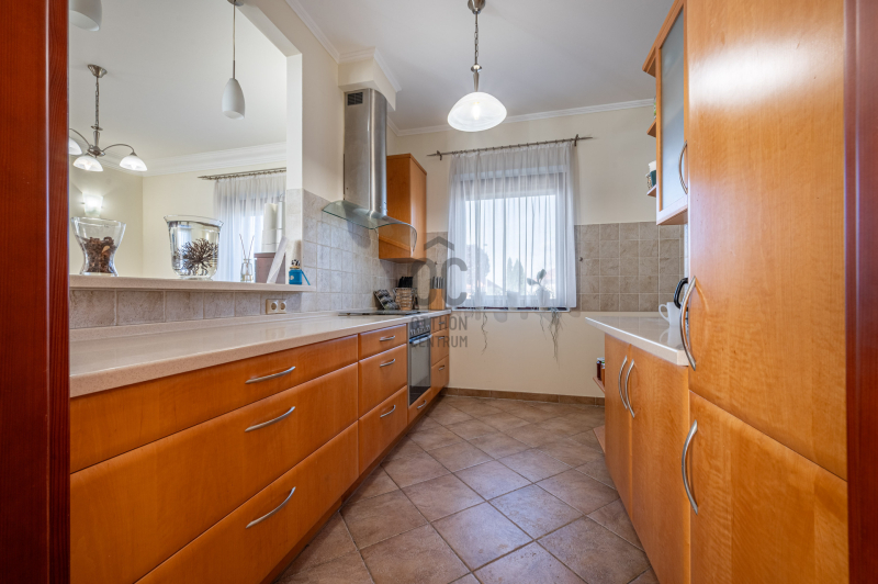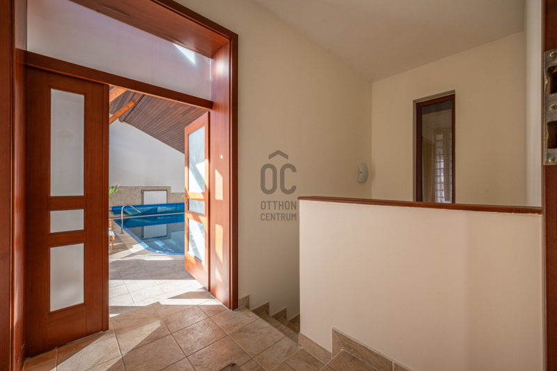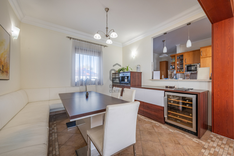A családiház 564 nm alapterületű, 9 szobával rendelkezik, 3 fürdővel ideális megoldás két generáció együttélésére is, mivel két külön lakrész került kialakításra, ami akár össze is nyitható.
