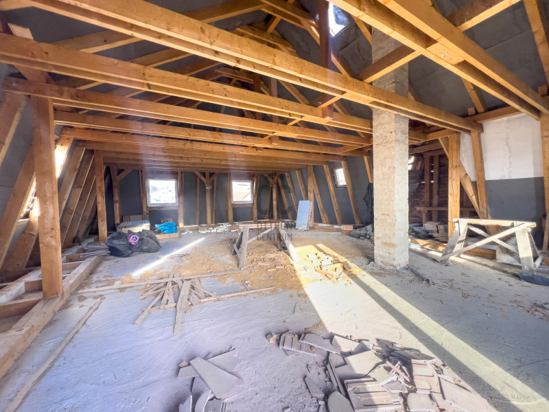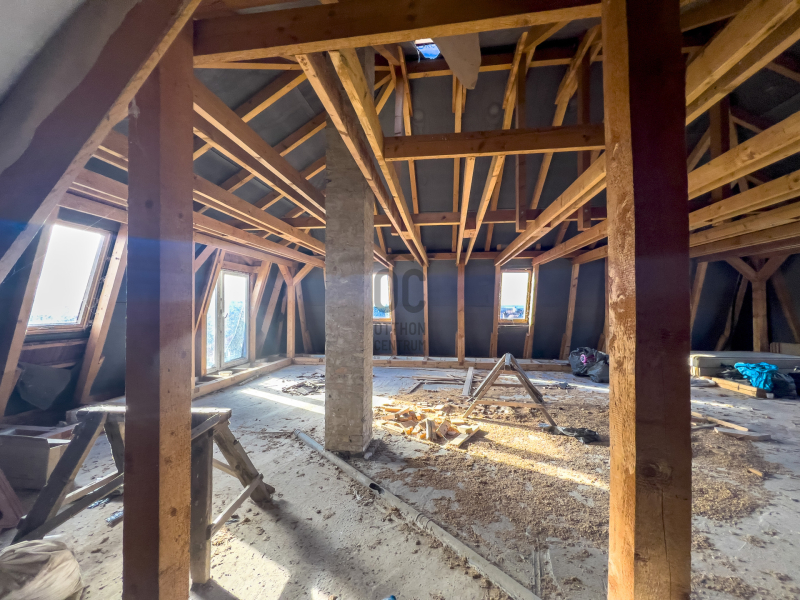 A tetőtér 80nm-es, műanyag nyílászárókkal, é
