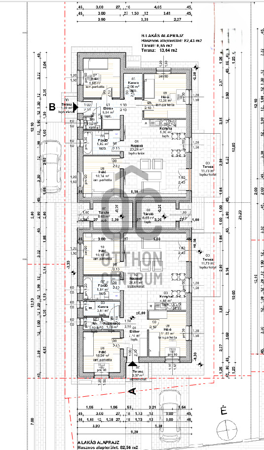- nappali + 3 szobás