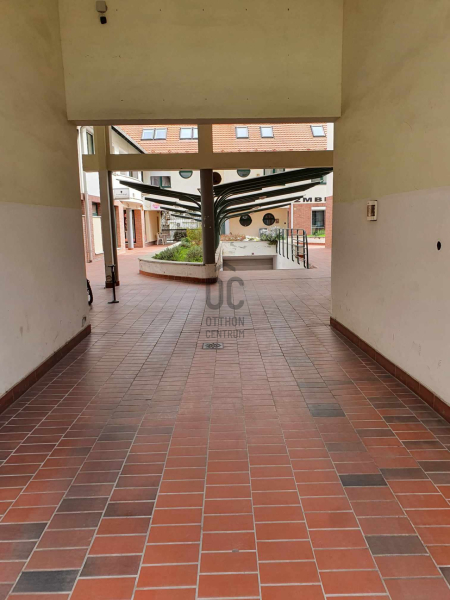 Elektromosan nyitható kapubejáró és garázslejáró. Nagyobb méretű autónak is kényelmes beállási lehetőség. Könnyen bérbe adható, közös költség 3600 ft.