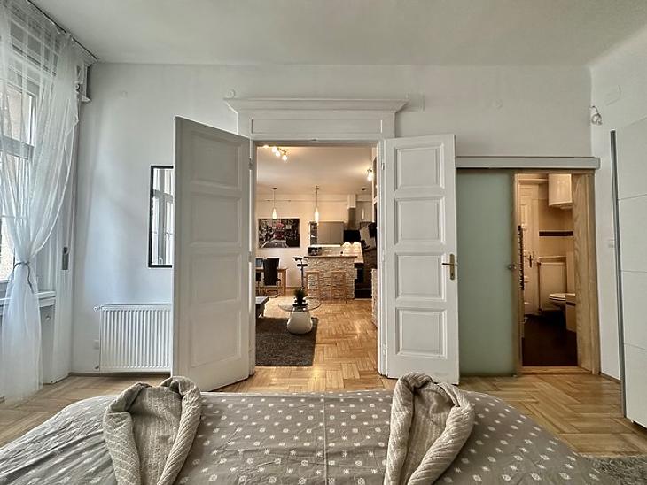 Eladó Vízivárosban egy nagypolgári, jó állapotú, liftes, 5 emeletes társasház 4. emeletén lévő 83nm-es lakás.2017-ben teljeskörűen felújították, ez magába foglalja a víz- és villanyvezetékek cseréjét, gáz kikötését, nyílászárók cseréjét és ekkor került kialakításra az amerikai konyhás nappali + 2 tágas hálószoba, fürdőszoba fürdőkáddal és zuha...