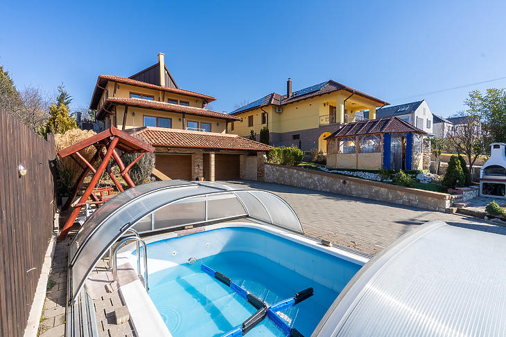 VERESEGYHÁZ: HEGYEK RÉSZÉN, ELADÓ EGY 1 SZINTES, 125 M2-ES, 4 SZOBÁS, ÚJSZERŰ ÁLLAPOTÚ IKERHÁZ, 28,67 M2-ES TERASSZAL, DUPLA GARÁZZSAL, SAJÁT KERTTEL, MEDENCÉVEL, SZALETLIVEL!A KÖRNYÉK:
