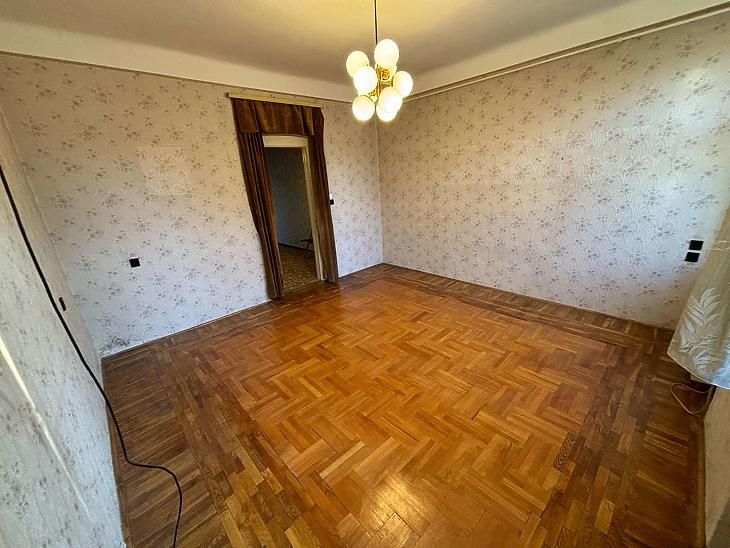 A szoba parkettával, a konyha és fürdőszoba járólappal burkolt.