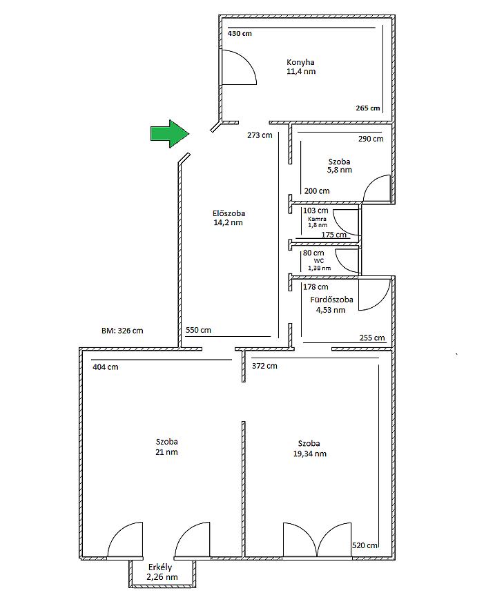 A lakás 78 nm, jó elosztású. Szobái külön megközelíthetőek, amelyek könnyen átalakíthatók a felújítás során.