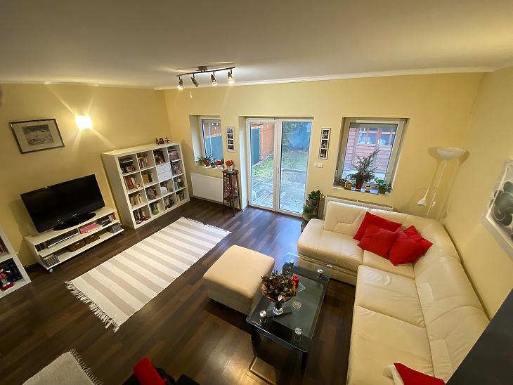 Pismány, Szarvashegy , Kőhegy által közrefogva, gyönyörű, csendes, széles, napsütötte utcában , Szentendre Izbégen eladó egy 4 lakásos sorház középső, 85 m² alapterületű kétszintes, dupla komfortos lakása.A ház 2002-ben épült, valamennyi lakása önálló helyrajzi számon bejegyzett, közvetlen utcafronti bejárattal rendelkezik. A 200m² ös...