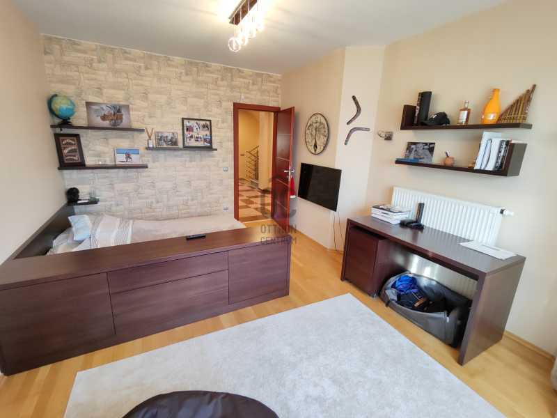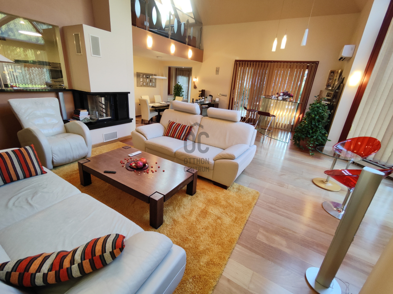 A ház melegéről gáz-cirkó fűtés, padlófűtésen és radiátorokon keresztül, illetve hűtő-fűtő klímák gondoskodnak. A ház tetején napelemeket helyeztek el, a garázsban elektromos autótöltő is helye...