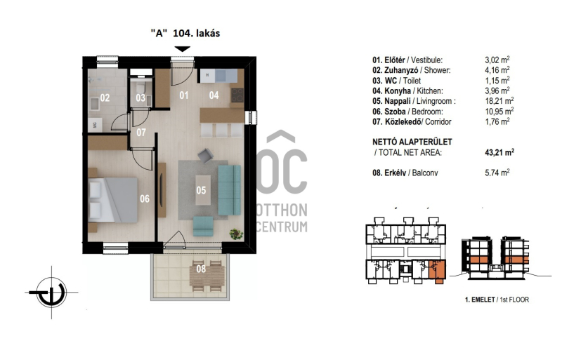 "A" I. emelet 104. lakás: 57.051.429.- + ÁFA- amerikai konyhás nappali