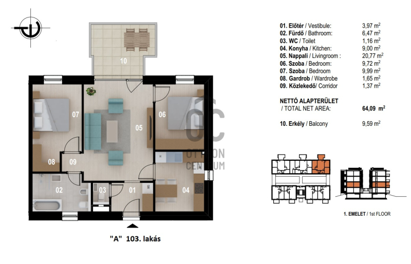 "A" I. emelet 103. lakás: 78.725.714.- + ÁFA- nappali