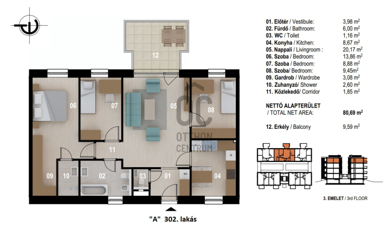 "A" III. emelet 302. lakás: 89.555.714.- + ÁFA- nappali