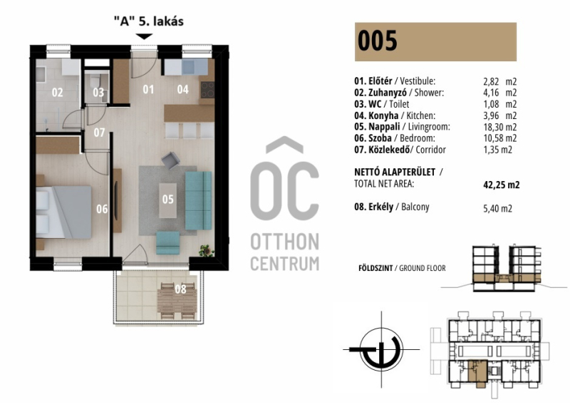 "A" épület fszt. 5. lakás: 57.051.429.- + ÁFA- amerikai konyhás nappali