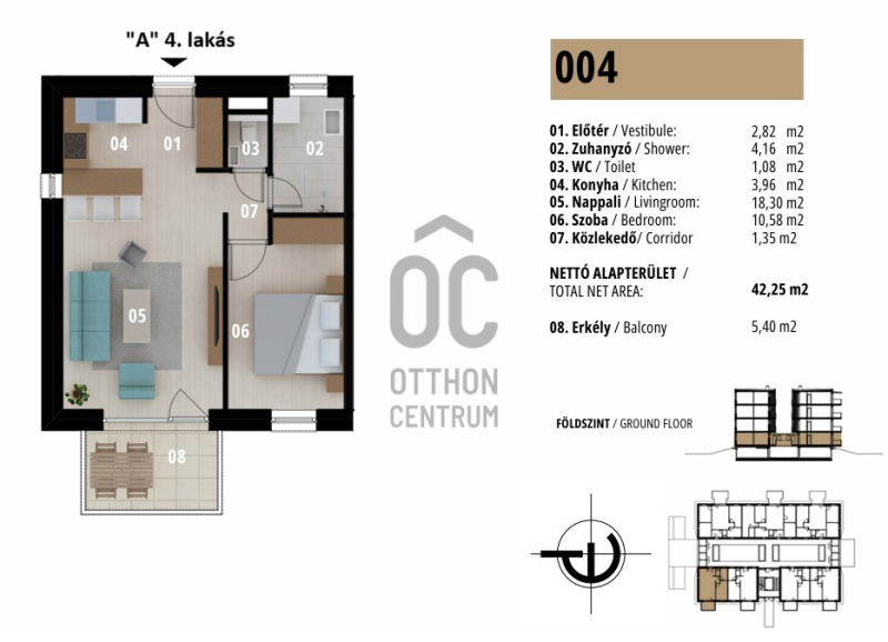 "A" épület fszt. 4. lakás: 57.051.429.- + ÁFA- amerikai konyhás nappali