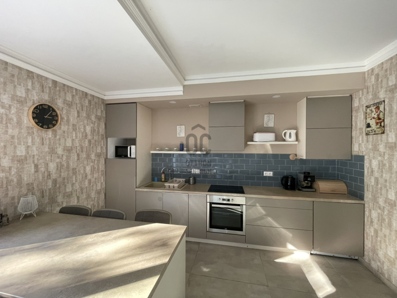 Modern amerikai-konyhás nappali beépített gépekkel