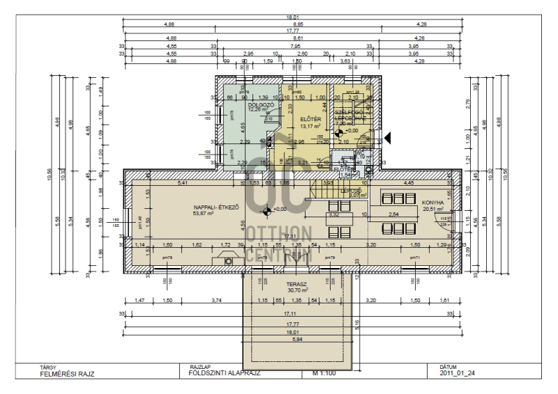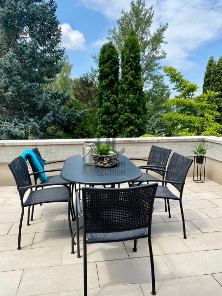 A földszinti 74 m2-es konyha-étkező-nappali térből jutunk ki egy nyugodt, csendes 30 m2-es ter...