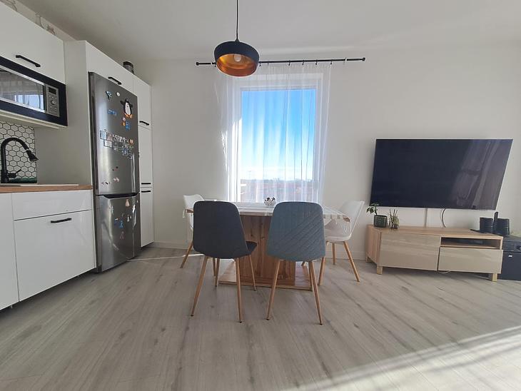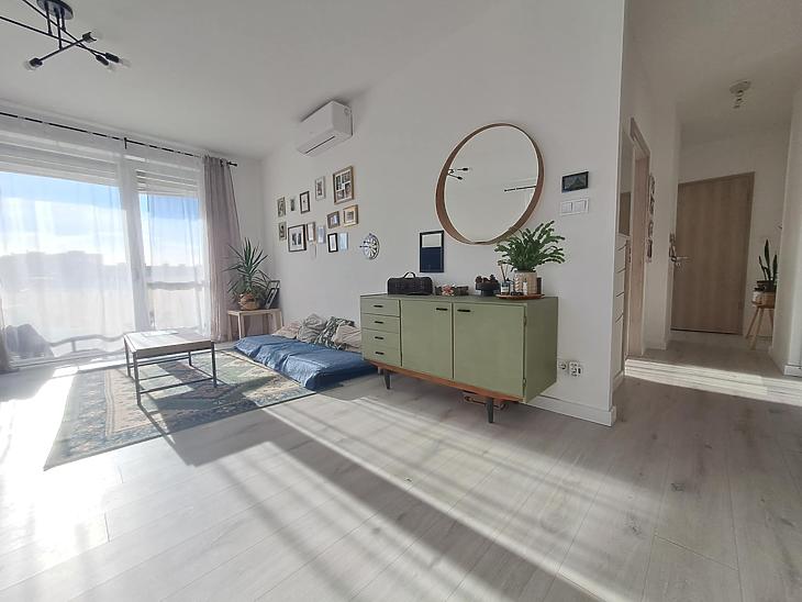 XIII. kerületben , a Duna Pláza közelében újszerű 2017-ben átadott társasház haramadik emeletén klimatizált, tulajdoni lapon 83m2-es, amerikai konyhás nappali plusz 3 hálószobás ingatlan 10 m2-es erkéllyel.