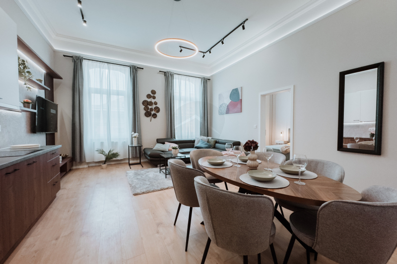 Budapest belvárosában, a Belső VI. kerületben, a Nyugati tér közelében eladó egy frissen felújított, modern, 5 szobás lakás. A környék kiváló infrastruktúrával és szolgáltatásokkal rendelkezik: