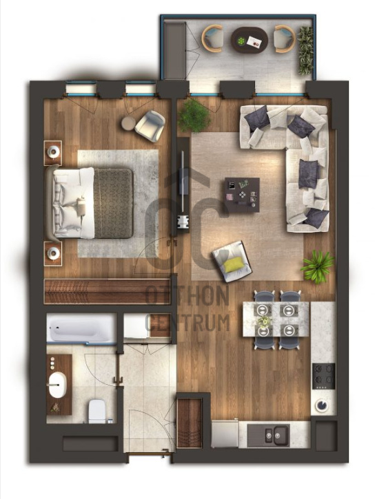 - amerikai konyhás nappali (25 m2)