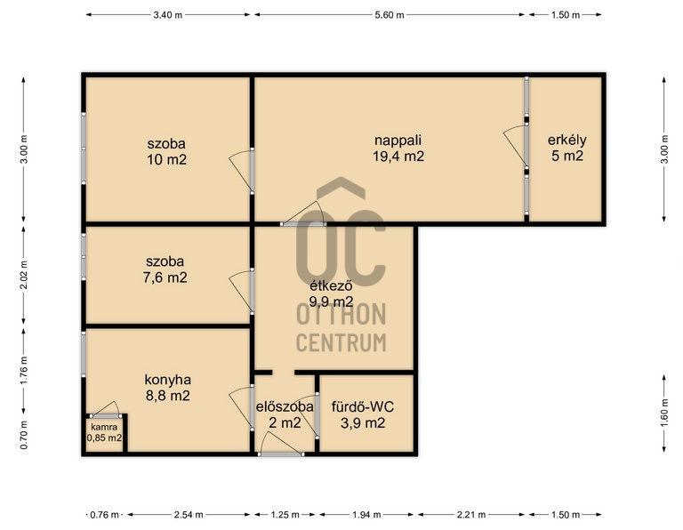 - A 63 m2-es lakás kialakítása rendkívül praktikus, a tágas nappali mellett egy konyha, kamra és két kényelmes hálószoba található.