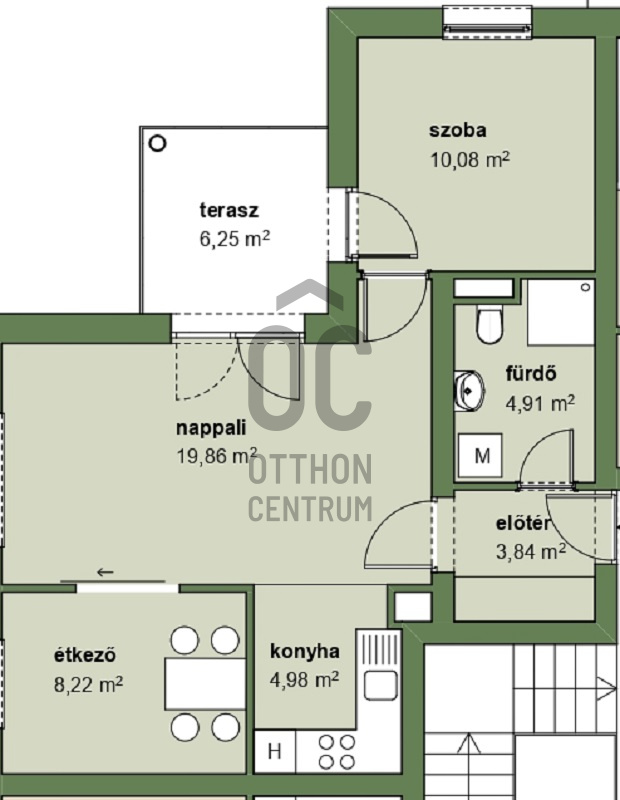 2. emeleti nappali, étkező és 1 hálószobás északnyugati fekvésű lakás erkéllyelProjekt bemutatása
