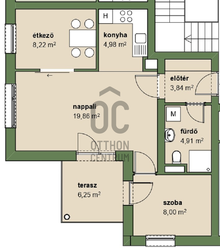 Első emeleti délnyugati fekvésű nappali, étkező és 1 hálós lakás erkéllyelProjekt bemutatása