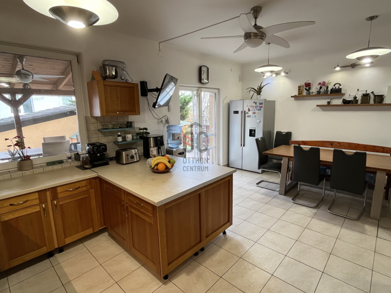 Solymár kiválóan megközelíthető részén eladásra kínáljuk családi házunkat, mely felbontható két teljesen különálló társasházi lakásra. A földszinti lakás 205nm, 2 szobás, konyha-étkezővel, fürdőszobával és külön wc-vel, valamint tartozik hozzá egy önálló, 63nm-es garázs és közös tároló a pinceszinten.A ház folyamatosan karban volt tartva, klímabe...