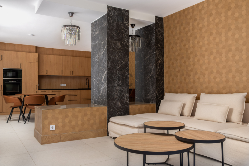 A minimál stílusban épülő lakások teljesen berendezve, az egyik legismertebb belső építész tervei alapján kerültek átadásra, a lát