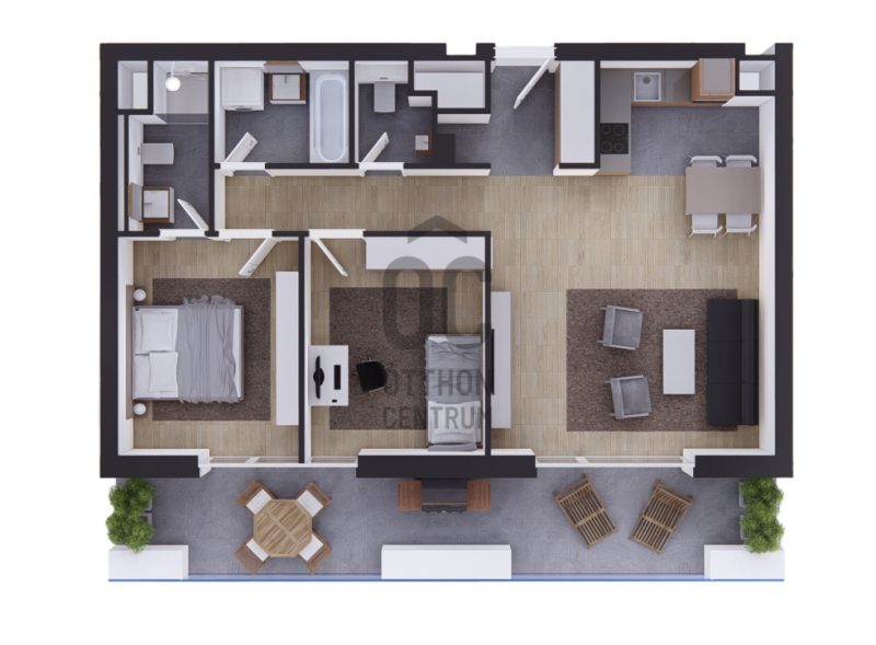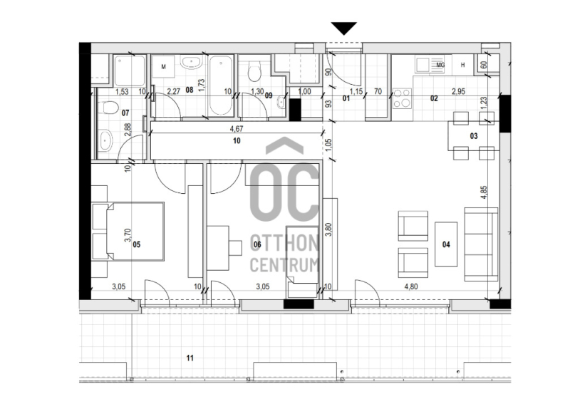 Ez a lakás csendes belső kertre néz, ÉK-i tájolású, 2 db fürdőszobája van.Projekt bemutatása