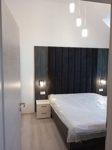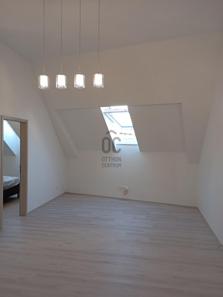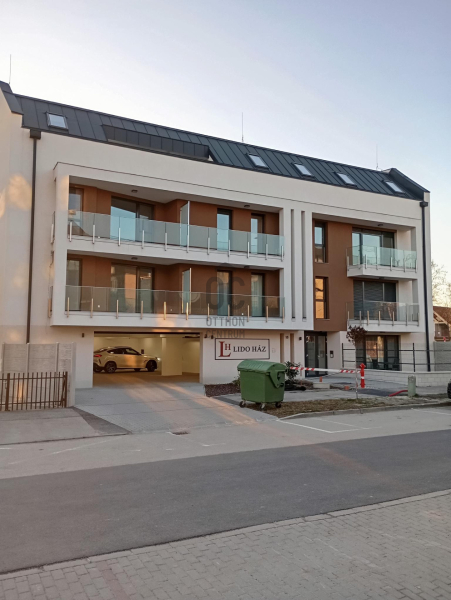 A társasház 2023-ban készült el, egy garázs és udvarszinttel, két lakószinttel és a tetőtéri szinttel, ahol a hirdetett lakás található.Mellette ingyenes parkoló található, a víz körülbelül 600 méterre van.