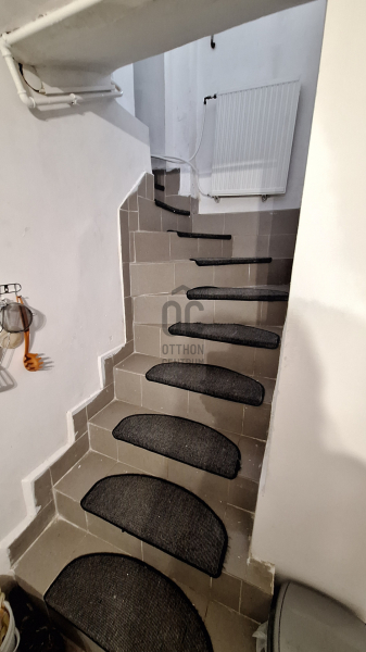 Az alsó szinten található a konyha és a hozzá tartozó tároló is. Belmagassága alacsony, azonban eléri a CSOK határt.