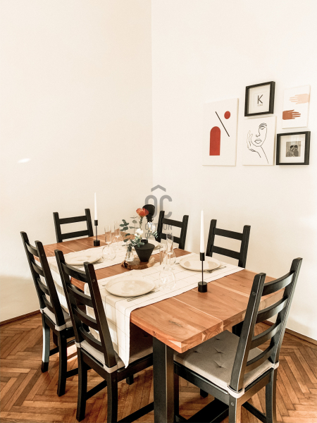 Megvételre kínálunk egy skandináv stílusban berendezett 71 nm-es, 2 szobás, 3. emeleti, extra napfényes, csendes lakást. A lakás két szobája utca, a konyha pedig udvari nézetű.Belépve egy nagy tér fogad, ahol a minimalizmus és a funkcionalitás találkozik. A fehér falak és a 3,6 méteres belmagasság jelentősen megnövelik a térérzetet. A lakás egyik...