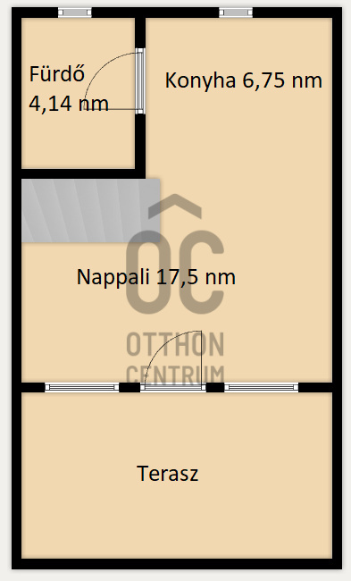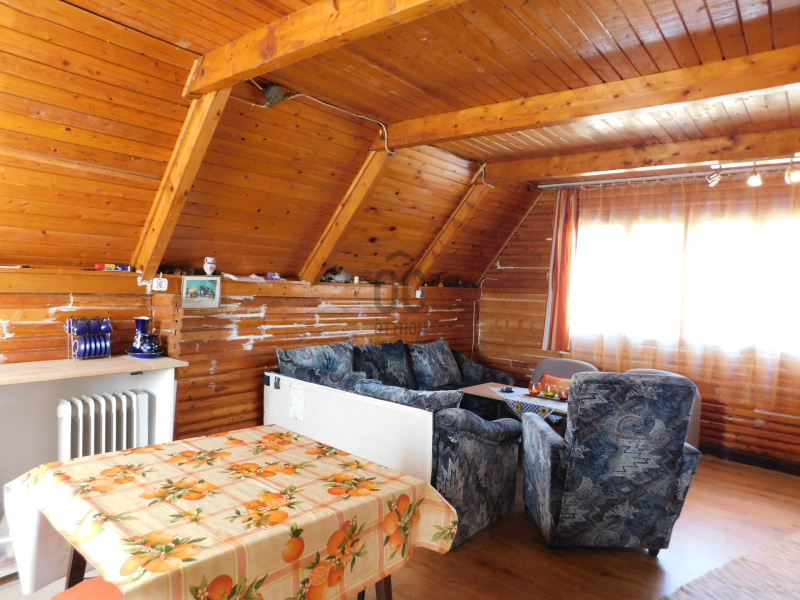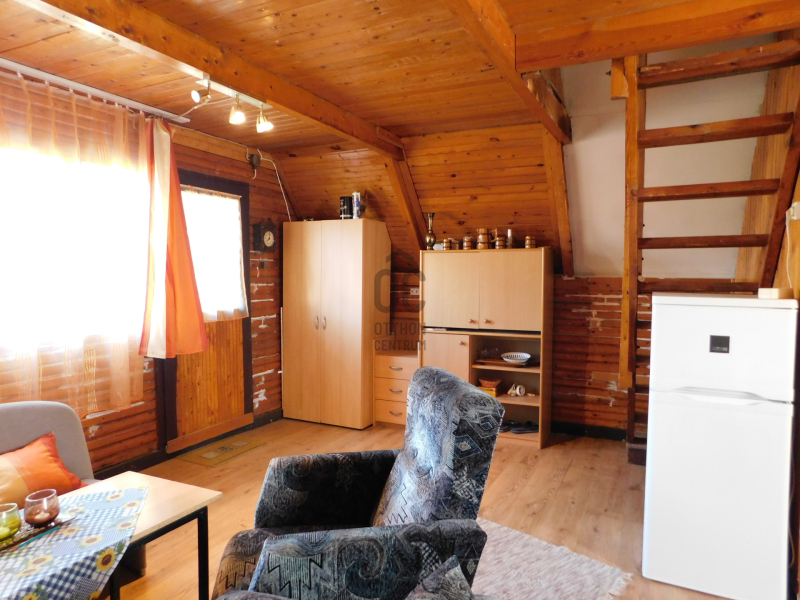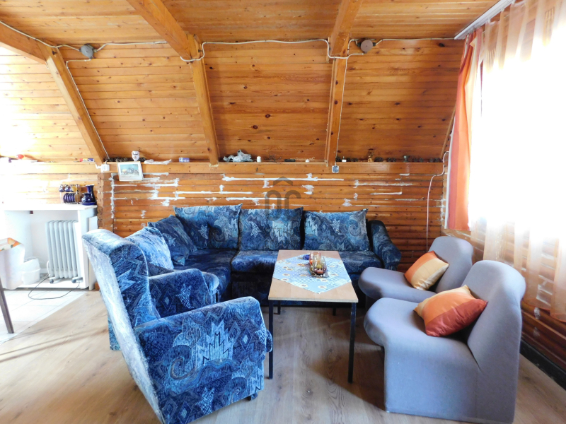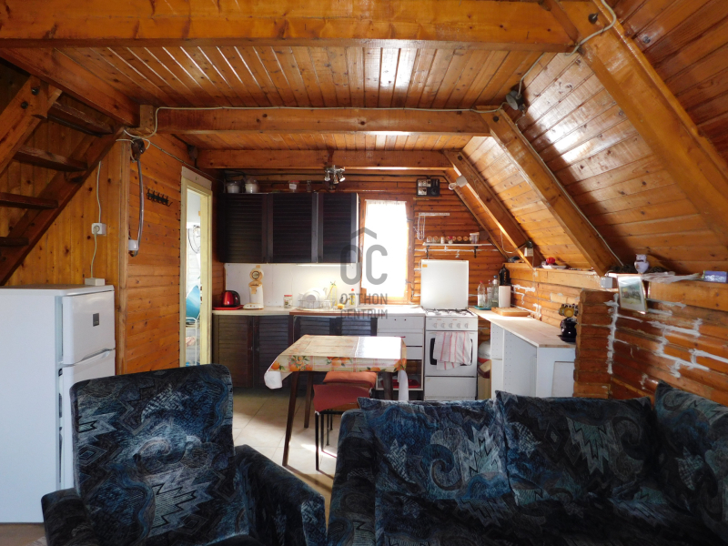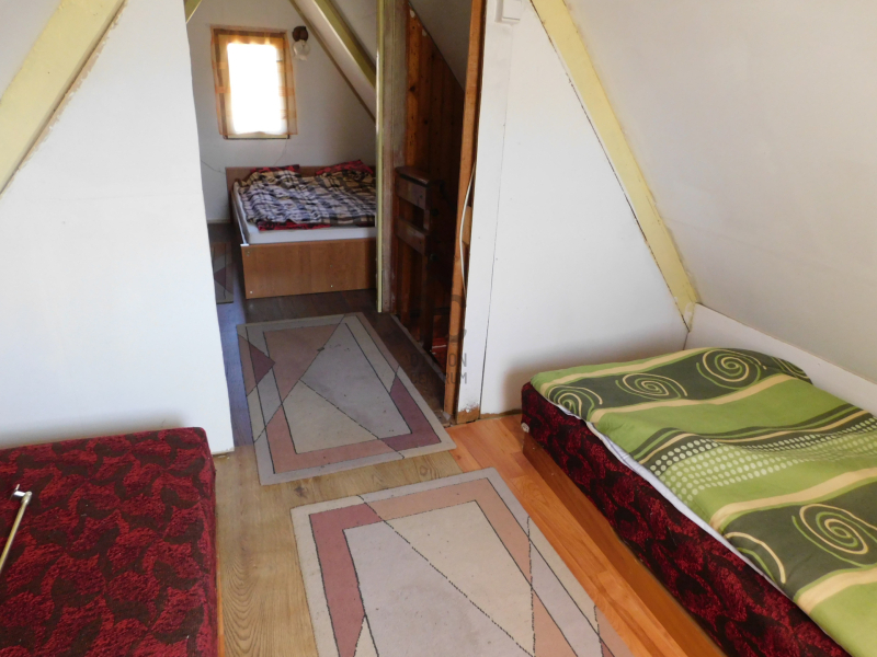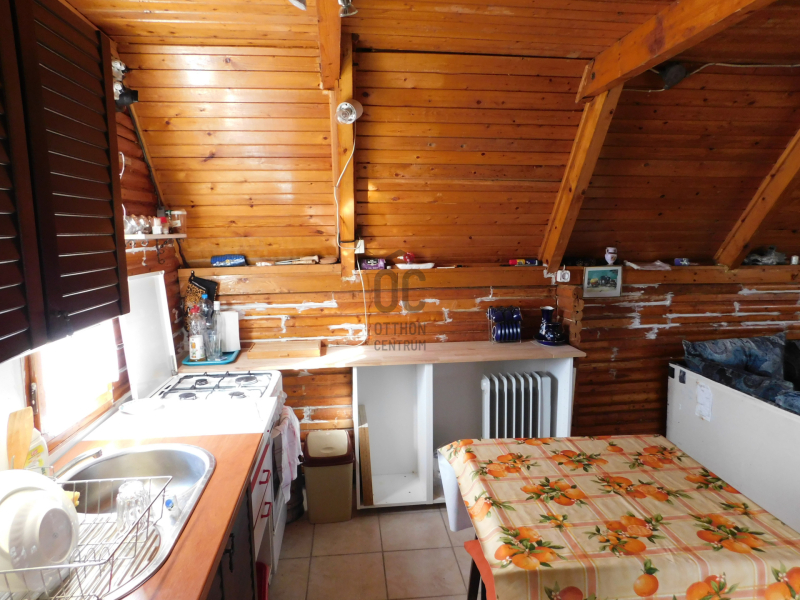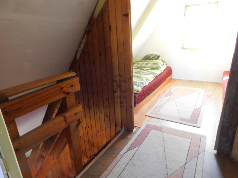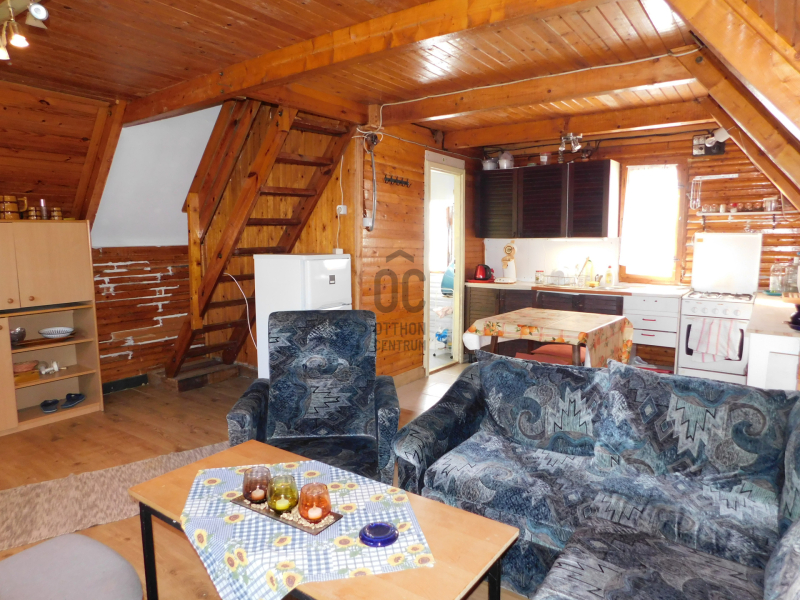 -helyiségek: nappali, konyha és fürdő-wc, tetőtérben 2 szoba.