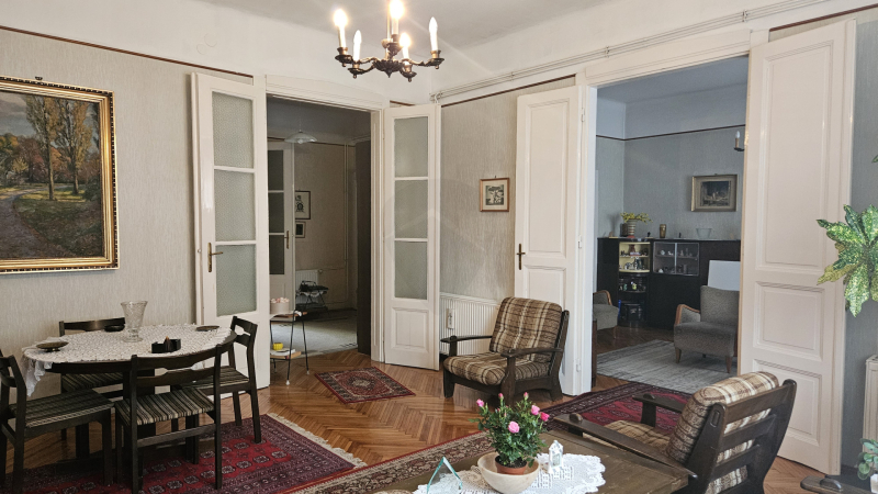 Eladó egy 81 m2-es, magasföldszinti, beköltözhető állapotú téglalakás a XI. kerületben, a Kosztolányi Dezső térnél.