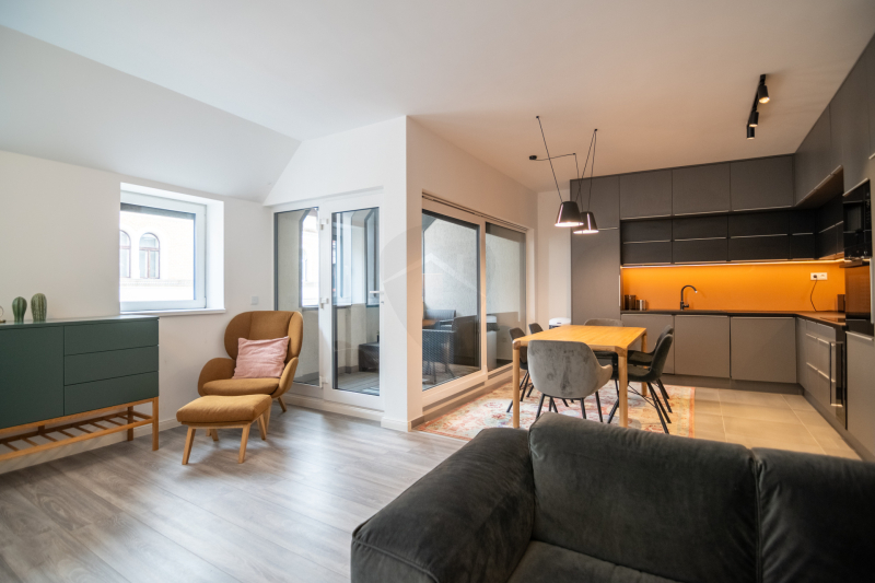 Megvételre kínálunk egy azonnal költözhető, exkluzív duplex lakást Budapest VI. kerületének egyik legkedveltebb részén, a Jókai utca és a Lovag utca sarkán található patinás nagypolgári épület tetején.Eladó egy minden igényt kielégítő, nappali + 3 hálószobás, bruttó 131 nm-es, teraszos duplex lakás.