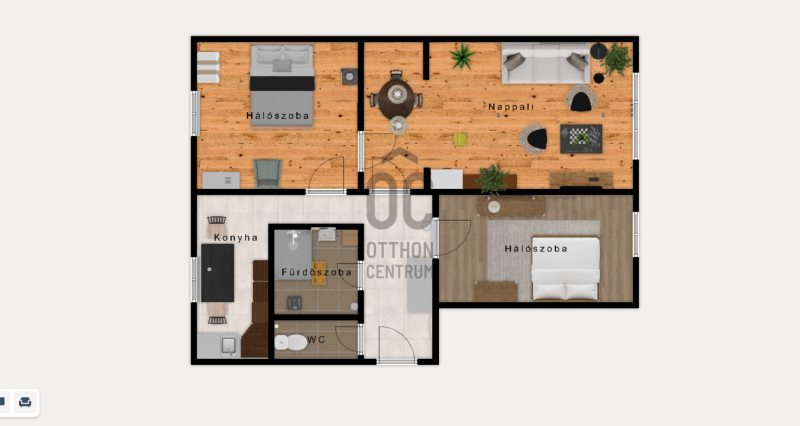 - 3 különnyíló szoba + hall