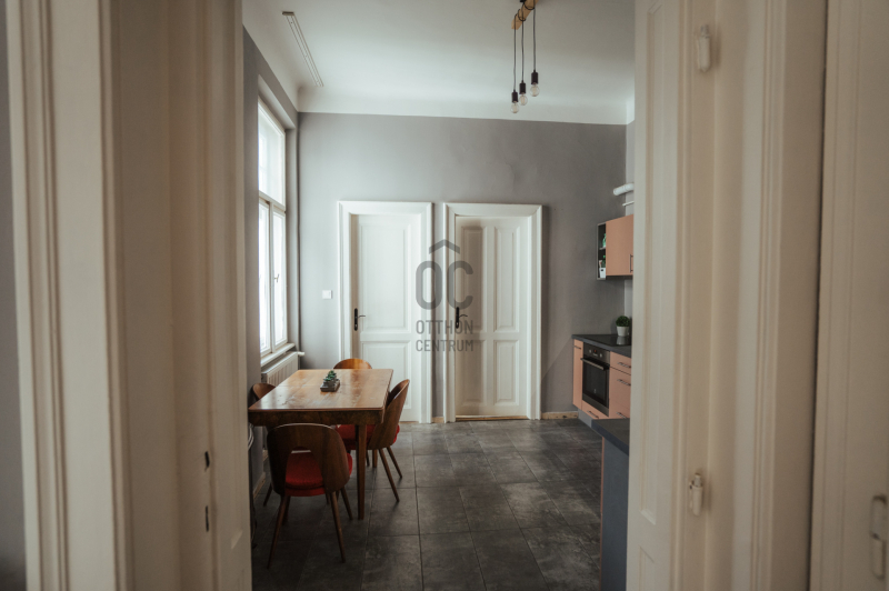 Győrben, mindössze 2-3 perc sétálótávolságra a Belváros pezsgésétől, egy akár irodának is alkalmas polgári lakást kínálok megvételre, egy 4 szintes, 8 lakásos társasház 1. emeletén. A helyiségek egy tágas előszobából nyílnak. A lakás alapterülete 124 nm, elosztása: 3 nagy szoba, gépesített konyha (Electrolux kerámialapos főzőlap, légkeveréses süt...