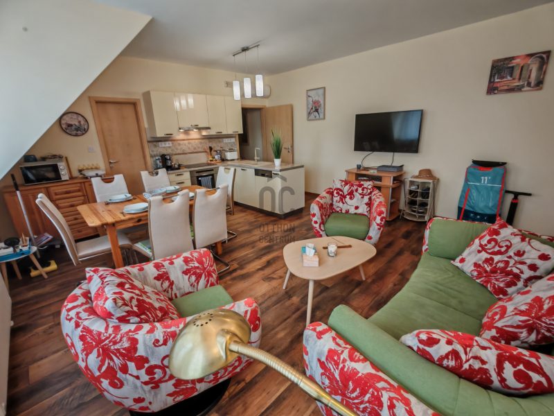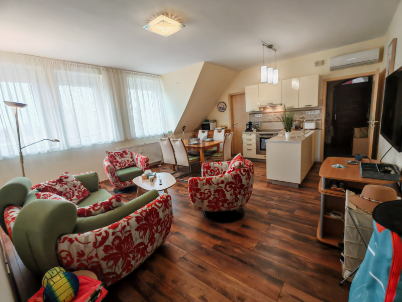 A Panoráma strand szomszédságában igényes kialakítású társasházi lakás lehet az Öné.A 2 emeletes épület féltetőterében kapott helyet a 2 szoba plusz amerikai konyhás nappali kialakítású jó elrendezésű lakás.