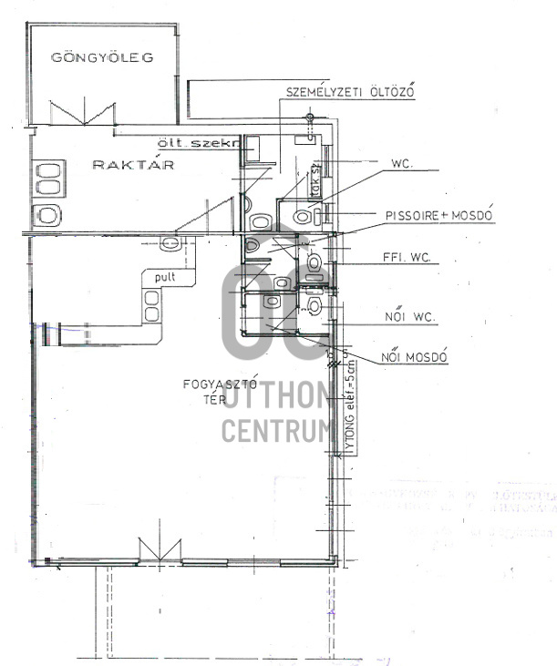 Beton alapra épült, ytong és könnyűszerkezet falazattal szigetelt fafödémes, nyeregtetős, pala és zsindely.Belső elrendezésre: üzlettér, 3 mosdó,, raktár és konyha.