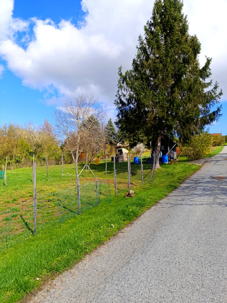 - Gyümölcsfák és egy kis szerszámtároló található rajta.