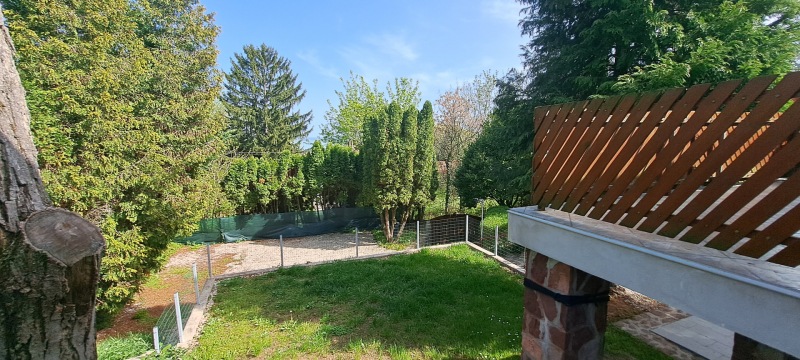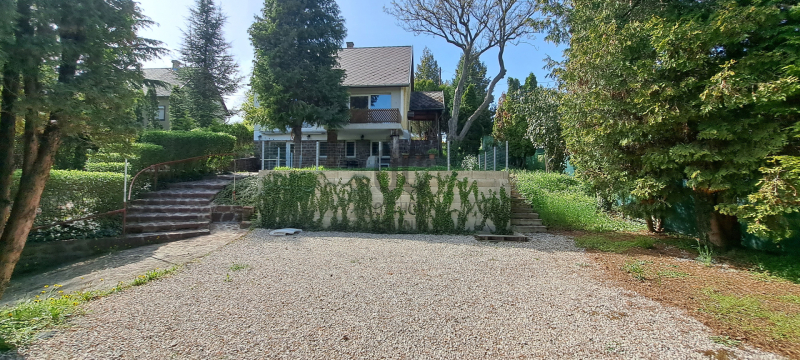 A kert alsó részén akár 3-4 autó egyidejű parkolása is megoldott, míg a fenti terasz kellemes, családi sütögetések helyszíne is lehet.