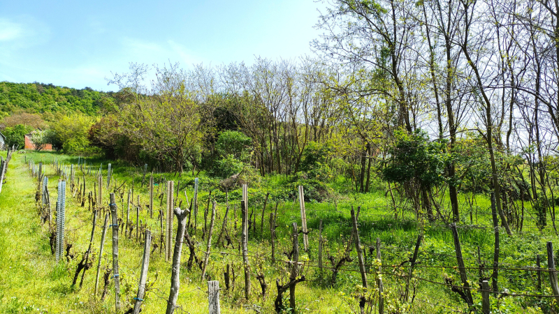 A telekterület kiterjedése 3751 m2, melyen jelenleg néhány sor szőlő, gyümölcsfák és egy felújítandó