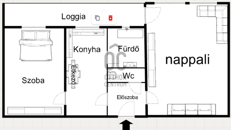 54 m2 hasznos alapterületű + tartozik hozzá egy tágas loggia.
