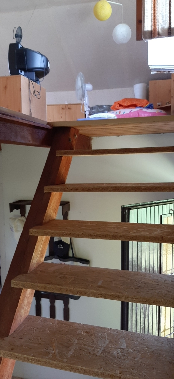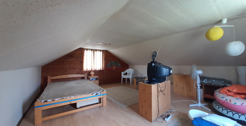 Az emeleten egy légterű nappali van.