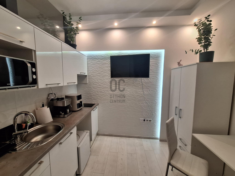 Befektetésnek tökéletes – azonnal kiadható, teljes berendezéssel eladó!A VII. kerület pezsgő belvárosi részén, a közkedvelt Kertész utcában, eladó ez az igényesen kialakított, 20 m²-es, fekvő galériás, félemeleti garzonlakás!