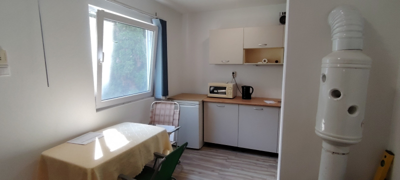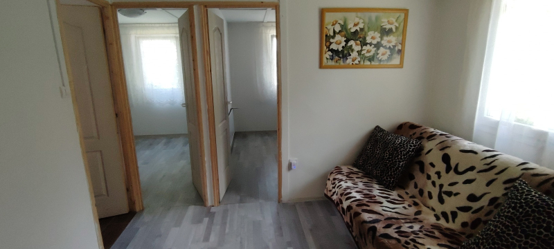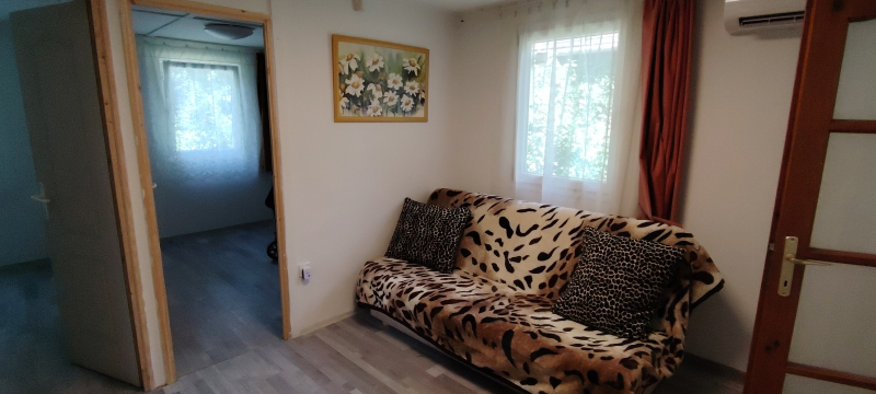 Eladásra kínálunk Ráckevén egy hétvégi házat.A nyaraló egy jelenleg 550 nm-es telken található, beton alapra állítottak egy Erdért típusú faházat, melyet két éve kibővítettek faszerkezettel, s az így kapott ingatlant trapéz lemezzel fedték. Külsőleg 5 cm-es hungarocell, és 10 cm-es mennyezeti kőzetgyapot szigetelést kapott.
